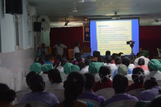 The program was initiated by a prayer song. Ms. AlsaMol, Dialysis Tutor welcomed the gathering. Dr.RenuDevaprasath, Medical Administrator briefly introduced Patient Safety Day. Dr.Subbiyan, Consultant Physiatrist presented the topic “Standing up to prevent errors”. Dr.Aneeta Alexis felicitates the gathering. Dr.Jithesh Lab director presented the topic “Improving Diagnosis Laboratories”. Mr. Kingstone, in charge of the imaging department, shared the topic “Improving diagnosis in Radiology”. Mrs.Mariya Lisa, Patient safety officer explained international patient safety goals – 2024.