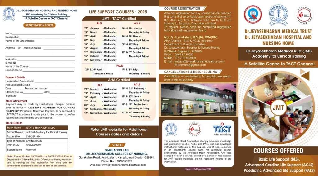 Dr.JEYASEKHARAN MEDICAL TRUST Dr.JEYASEKHARAN HOSPITAL & NURSING HOME KP ROAD, NAGERCOIL, SOUTH INDIA 629003