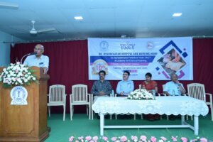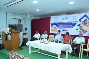 The Chief Guest Dr. N.Ramakrishnan, AB (Internal Medicine, Critical care, Sleep Medicine and Obesity Medicine), Founder & Managing Director, TACT Academy for Clinical Training was introduced by the Academy Chairperson Dr.Renu Devaprasath, DNB (Anesthesia).  He delivered  the chief guest address. He shared his experience in stimulation based training and his motive in the initiation and inception of TACT Academy, India’s first simulation based training centre. In his speech he emphasized the importance of simulation based training in lifesaving skills and motivated others to learn and utilize the skills in emergency situations.