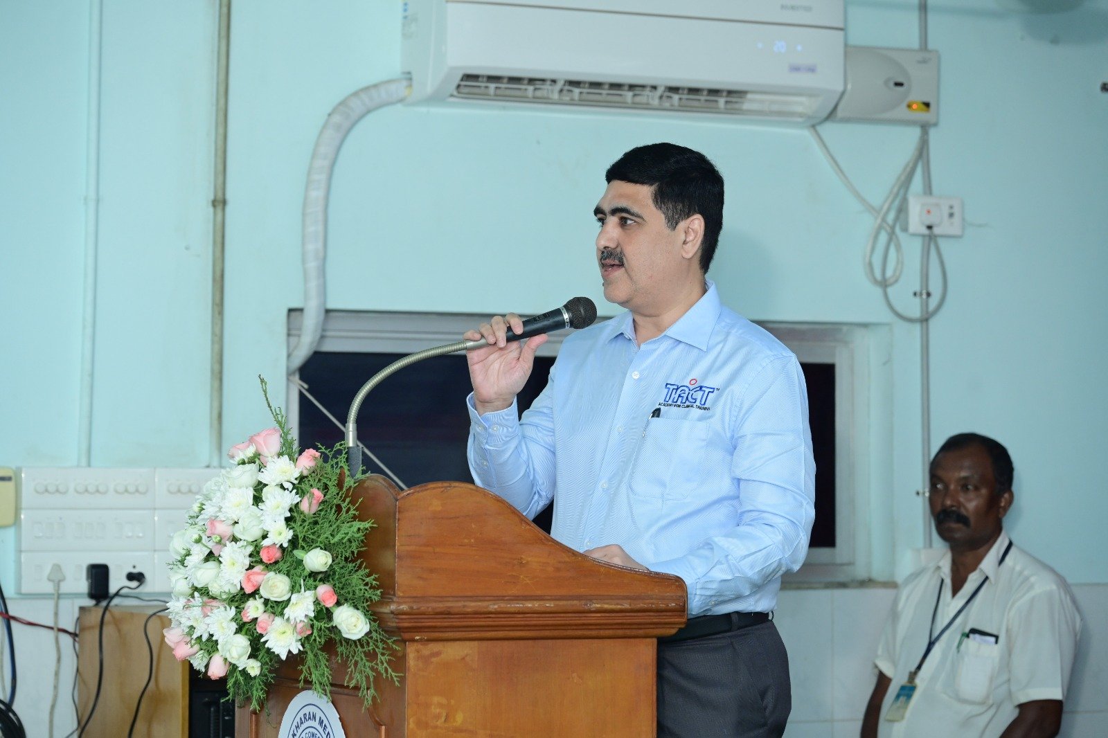 The Chief Guest Dr. N.Ramakrishnan, AB (Internal Medicine, Critical care, Sleep Medicine and Obesity Medicine), Founder & Managing Director, TACT Academy for Clinical Training was introduced by the Academy Chairperson Dr.Renu Devaprasath, DNB (Anesthesia).  He delivered  the chief guest address. He shared his experience in stimulation based training and his motive in the initiation and inception of TACT Academy, India’s first simulation based training centre. In his speech he emphasized the importance of simulation based training in lifesaving skills and motivated others to learn and utilize the skills in emergency situations.
