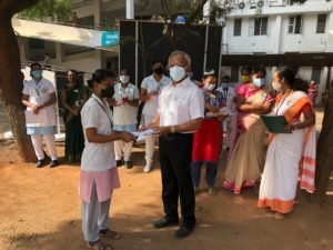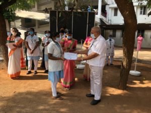 The 75th Independence Day was celebrated at Dr.Jeyasekharan Medical Trust on 15th August 2021 in front of the D-Block. The celebration was started with a prayer song by the Hospital choir followed by the Bible reading and Prayer by the hospital staffs.