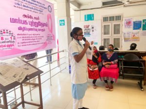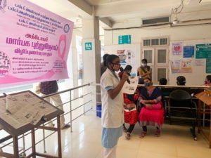 Breast cancer awareness month was observed at Dr.Jeyasekharan Hospital on the following days. 20.10.2021, 22.10.2021, 25.10.2021, 27.10.2021, 29.10.2021.