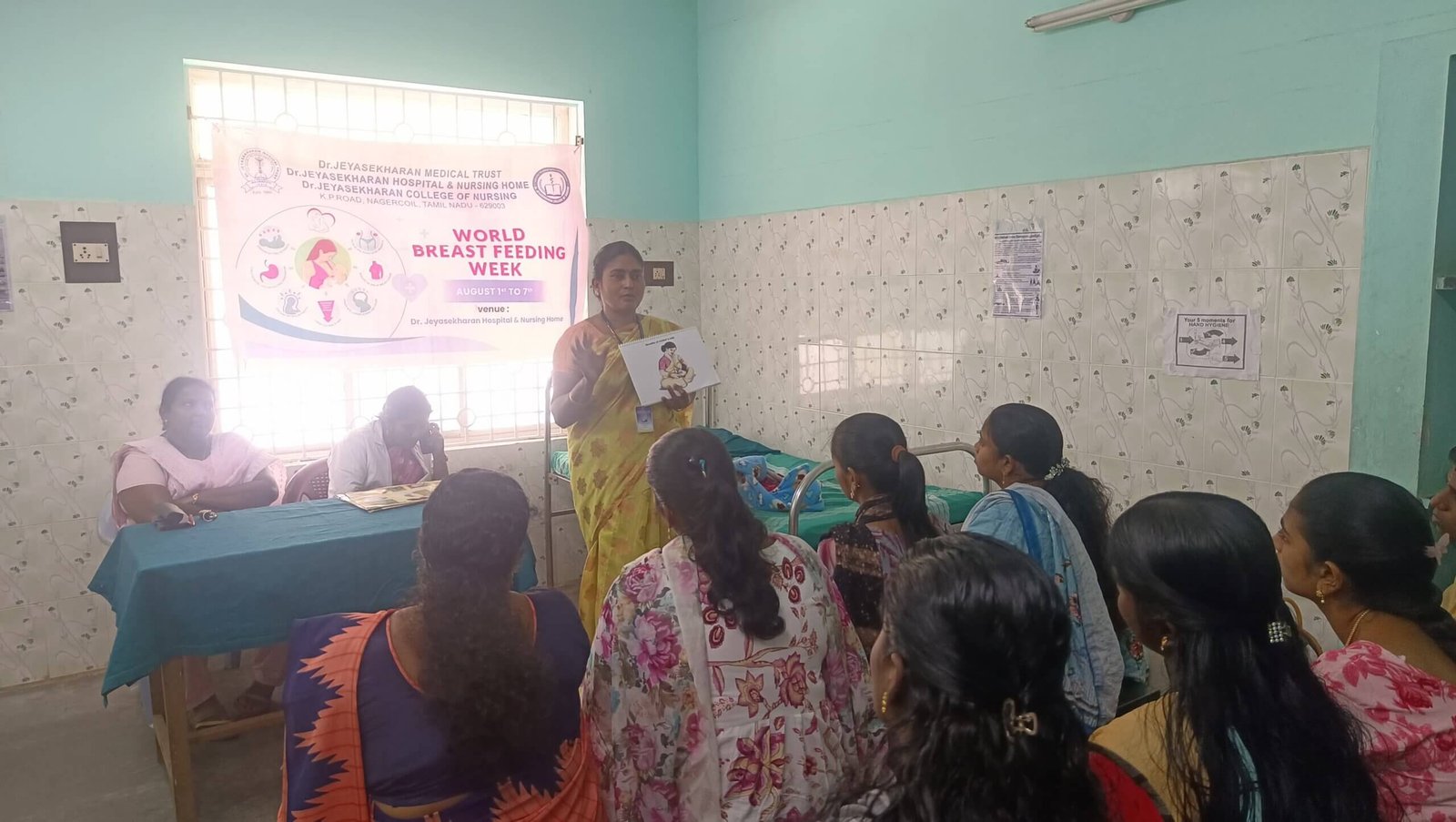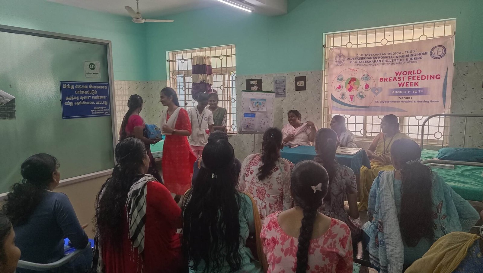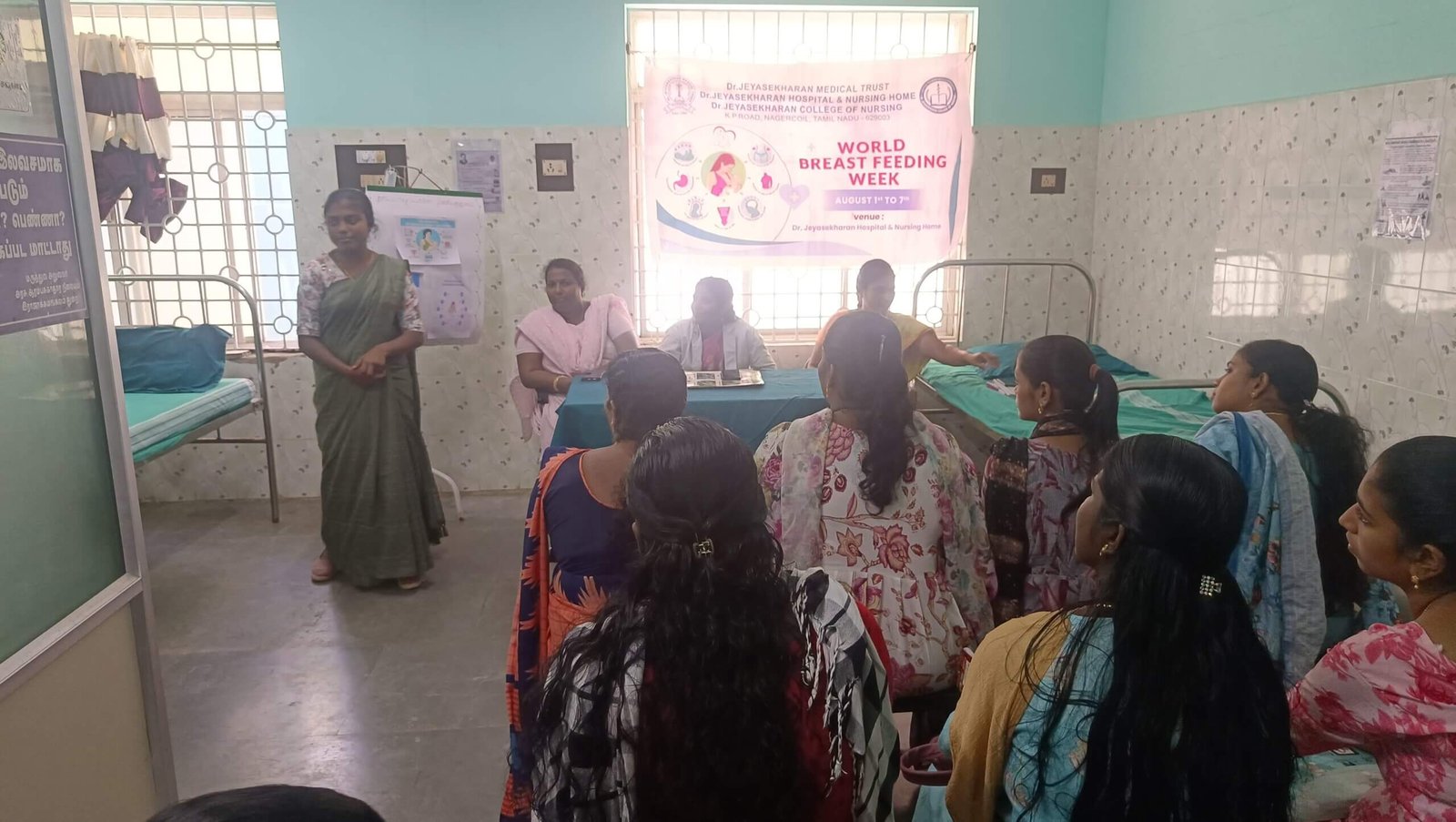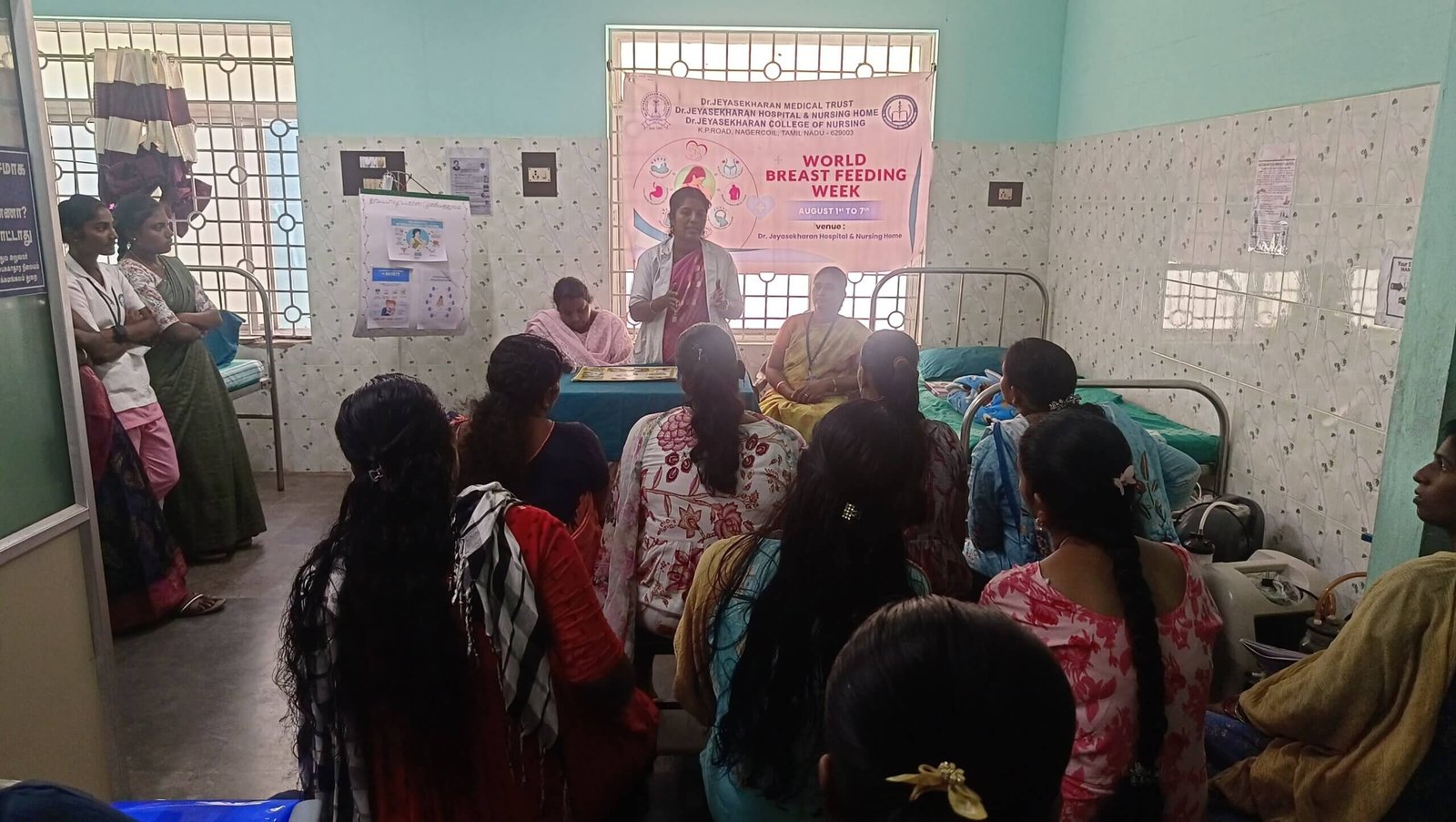 On 4th and 7th of August, at Dr. Jeyasekharan Hospital, group health education given to all antenatal and postnatal mothers through Role play focussing on benefits, myths and facts related to Breast Feeding. Individual Health talk was given to all mothers who are admitted in hospital. Mothers actively participated in giving a good response and cleared their doubts. Pamphlets were distributed.