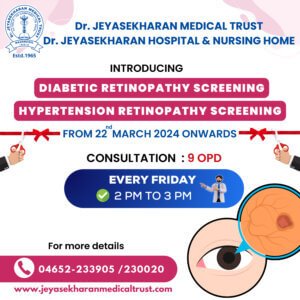 We’re happy to inform you that the introduction of Diabetic Retinopathy Eye Checkups in our hospital, with support from Bejan Singh Eye Hospital, available every Friday from 2 PM to 3 PM in CR 9, starting from March 22, 2024.