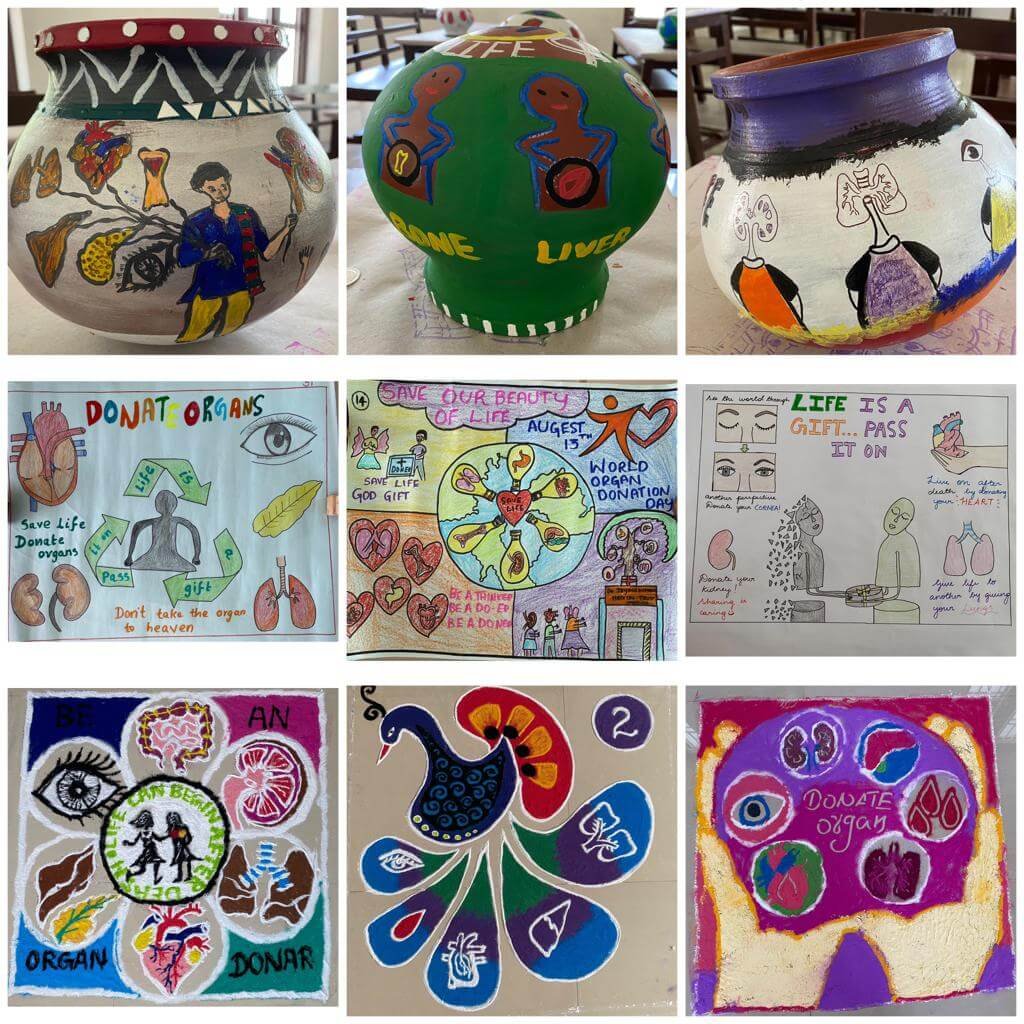In order to create awareness among College students, a poster making competition with the theme “Life is a Gift… pass it on” and Pot painting with the theme “Share your life” then the Rangoli competition with the theme “Life can Begin After Death” were conducted on 28.07.2023 by the College of Allied health Sciences for the students of Dr. Jeyasekharan Medical Trust, College of Allied Health Sciences and Dr.Jeysekharan College and School of Nursing.