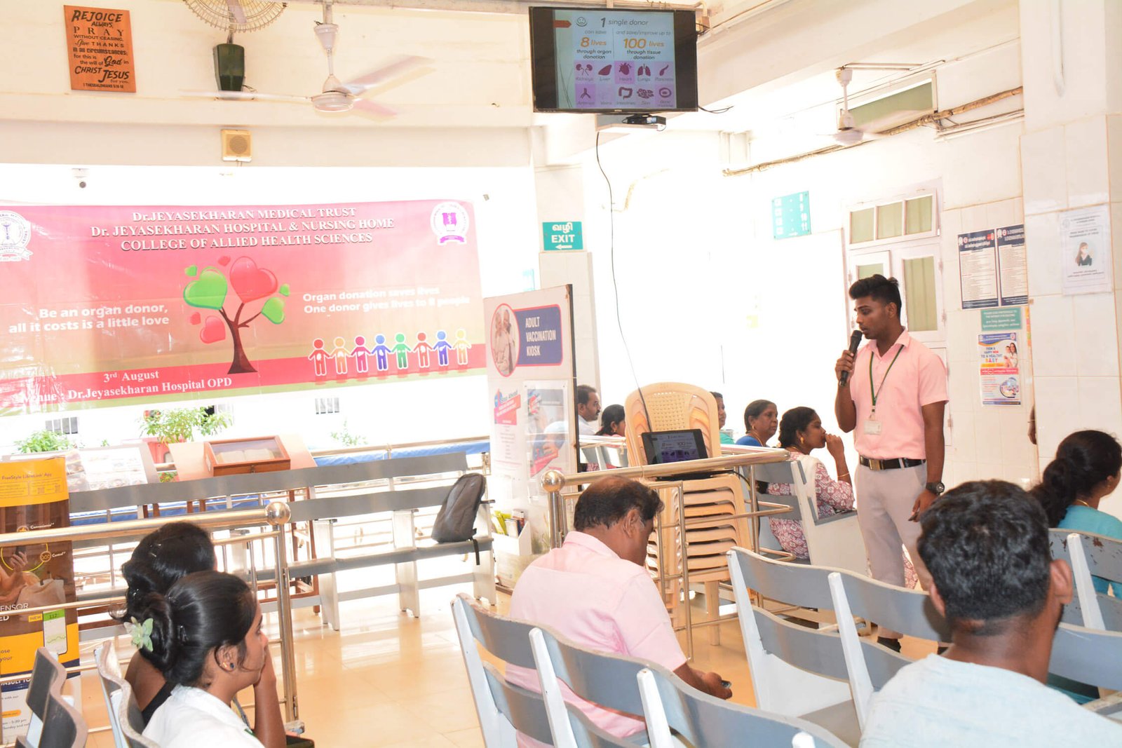 “Indian Organ Donation Day” was celebrated at Dr.Jeyasekharan Hospital & Nursing Home, OPD section on 03.08.2024 to create awareness about Organ donation. The Program organized by Dr.Jeyasekharan Hospital and Nursing Home in collaboration with the College of Allied Health Sciences.