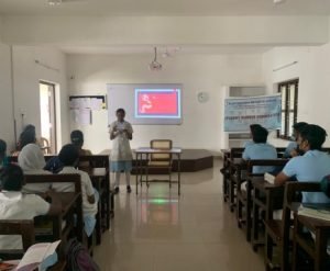 The National Deworming Day was conducted by B.Sc (N) II year students on 21- 02-2023 at around 03.00 pm in I Year class room.Mrs Golden Catherine, the SNA Advisor, joined this occasion. Master of ceremony was done by Ms.Abinaya, II-year B.Sc. Nursing. Ms.Aarthi , Bsc(N) II year welcomed the gathering