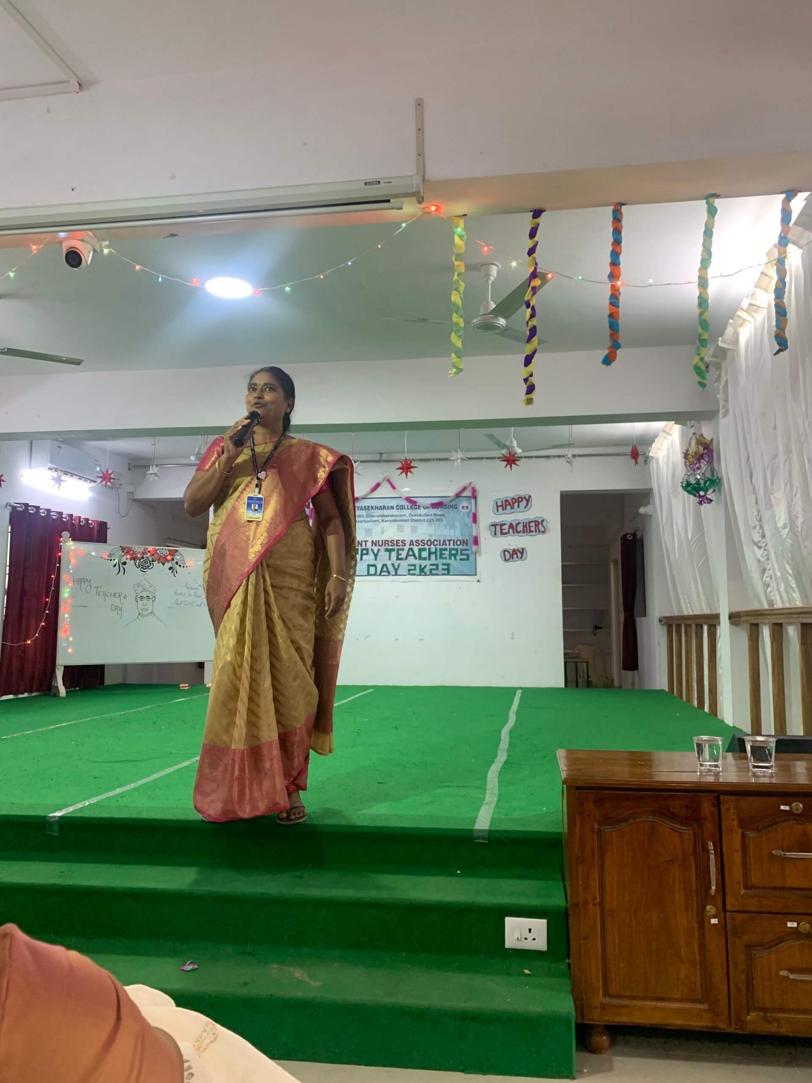 The event started with Prayer song by the college choir. Ms. Daffney, III Year B.Sc. Nursing welcomed the gathering. Teacher’s day message was given by Dr. Sarayu Priya, Principal. Madambriefed about the significance of Teachers day and inspired the students by her motivational speech. Correspondent felicitated the event congratulating her team of teachers for their hard work in the growth of the institution and extended her teachers day greetings to all.