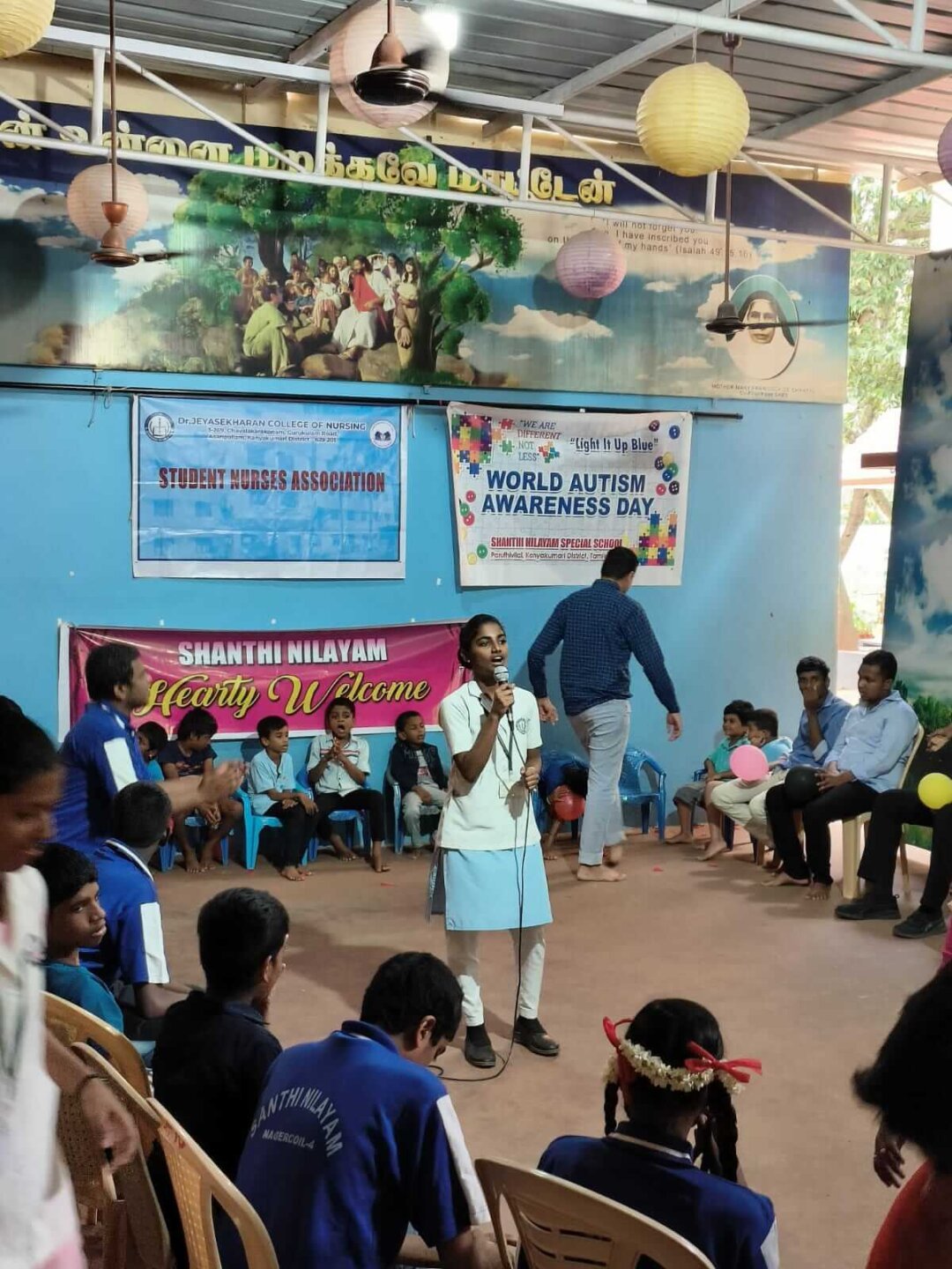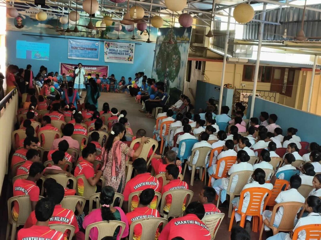 We the Dr.Jeyasekharan School & College of Nursing has planned to conduct Autism Awareness programs on 2nd April 2025 at Santhi Nilayam, School for mentally challenged. The III year B.Sc (N) students and II year DGNM students along with Nursing Faculty made a visit to Santhi Nilayam and performed program.