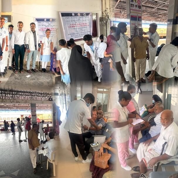 Hypertension survey was conducted in various areas to the public by checking their height, weight, BMI & blood pressure (10.06.2024 to 15.06.2024) by Mr. Binni M.Sc(N), Prof. Hepsi Beulah A M.Sc(N), Ms. Arul Sheeha M.Sc(N) & team. Awareness regarding their health status was updated to them personally. Approximately 1,190 people were surveyed in common areas like railway station and community. Health talk were given regarding life style modification, prevention of hypertension, dietary plan (DASH).