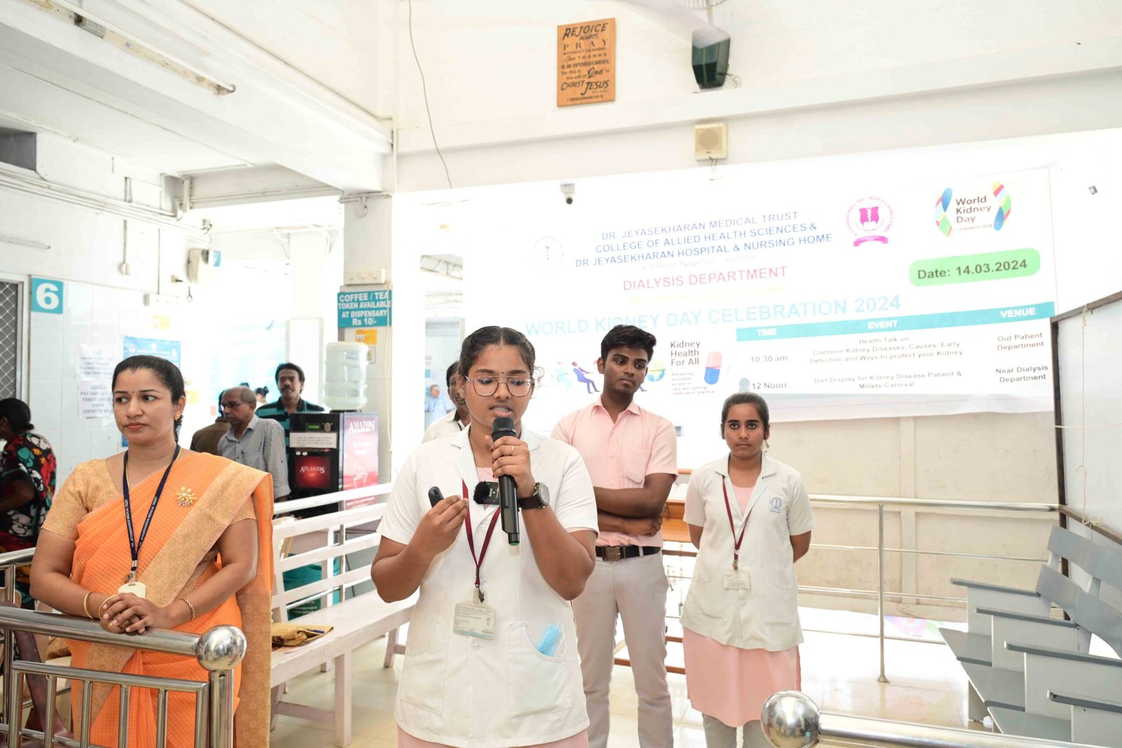 The World Kidney day was celebrated at Dr.Jeyasekharan Hospital & Nursing Home with the Theme of “Kidney Health for All” on Thursday, 14.03.2024 to create awareness about Kidney disease and its prevention. The programme was organized by College of Allied Health Sciences.
