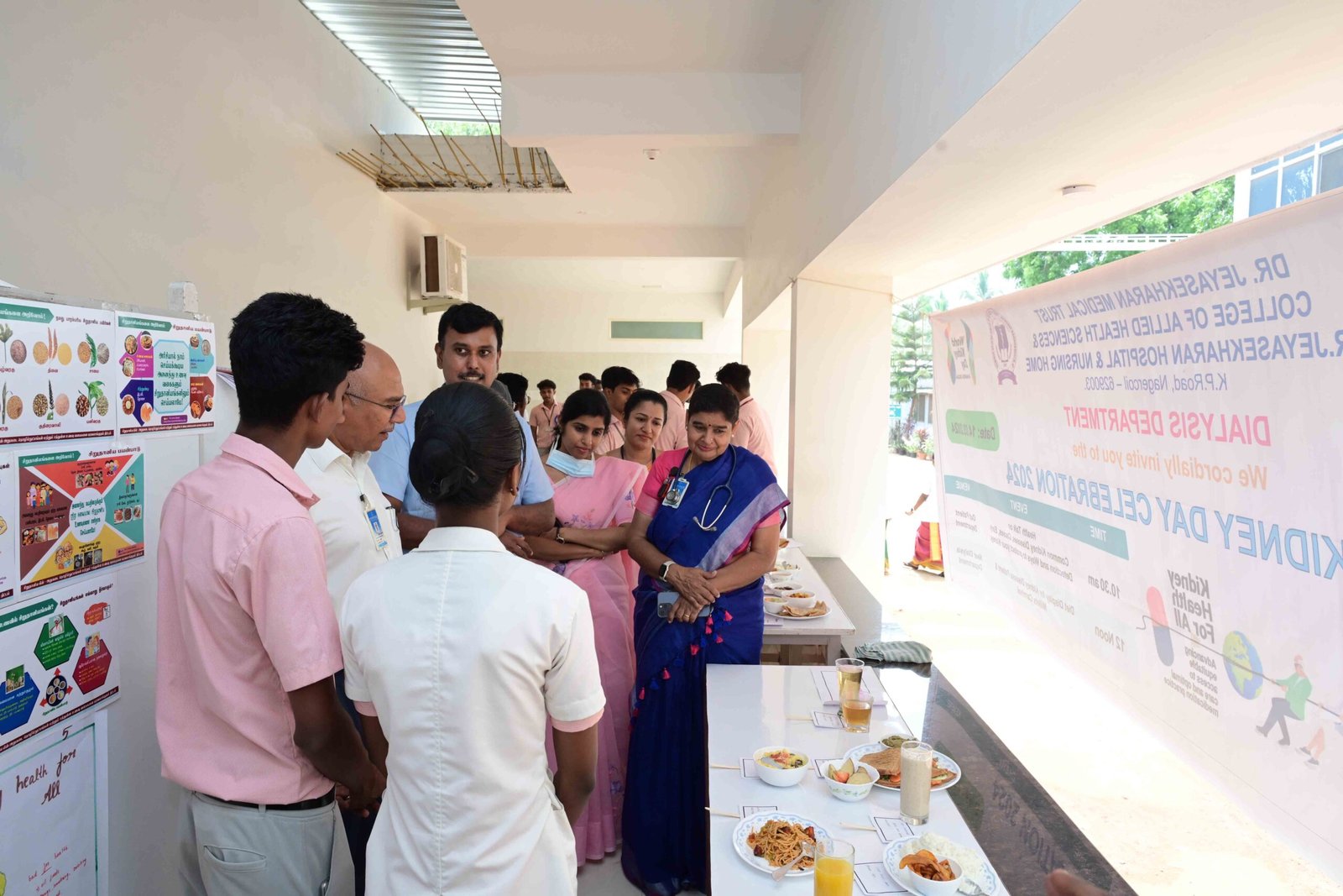 Followed by health talk, The Therapeutic diet Display and Millets Carnival was started around 12 pm near the Dialysis unit and inaugurated by Dr. Ninoo George, Consultant Nephrologist, Dr. Namrata Jeyaharan, Consultant Paediatric Neurologist, Mrs. Jeyalakshmi, Vice Principal and Mrs. Subila Jasphine, Dialysis Dept in charge.