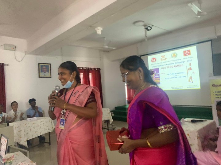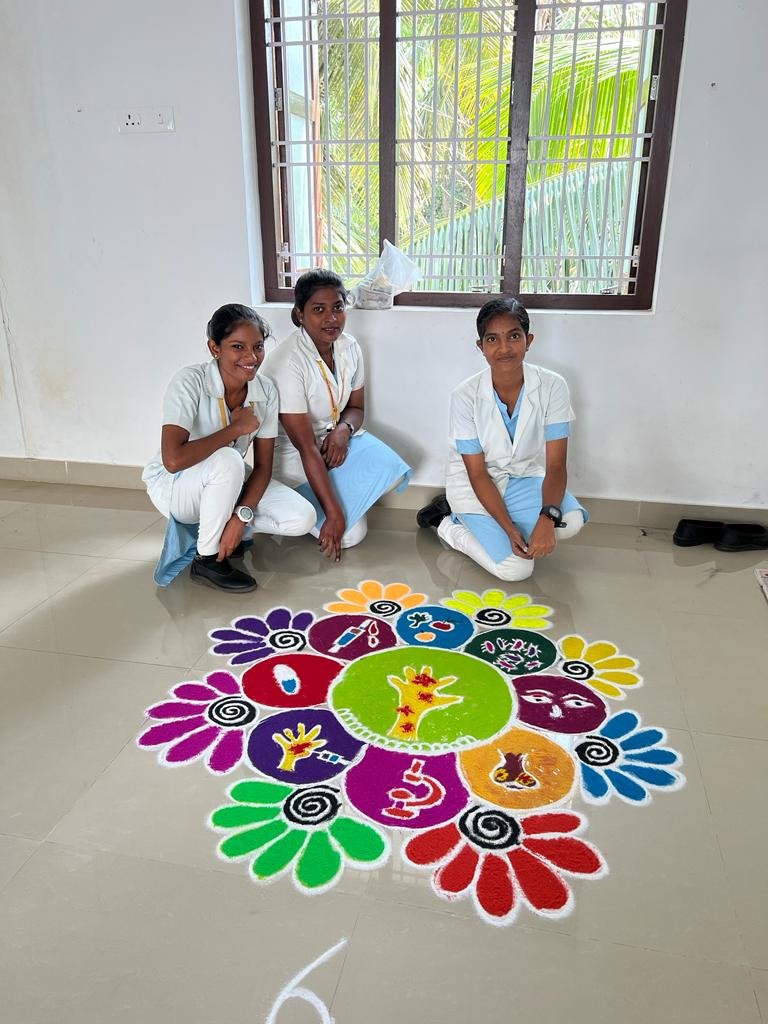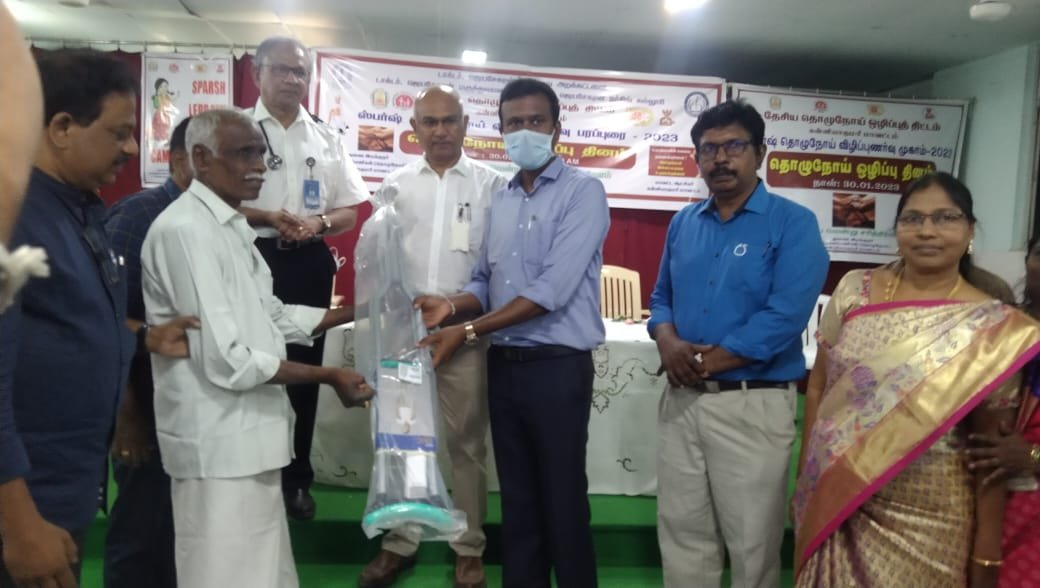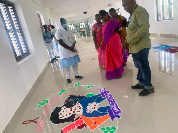 Programs were organized by college of nursing like puppet show, Drama (both programs were given a note regarding leprosy management to the gatherings). Intercollege Quiz and Rangoli competition were held and prizes were distributed for the students, and 3 patient beneficiaries by the collector. Vote of thanks was given by Mr. Madamuthu finally the program end up with National Anthem.