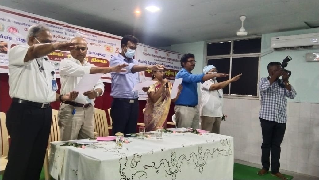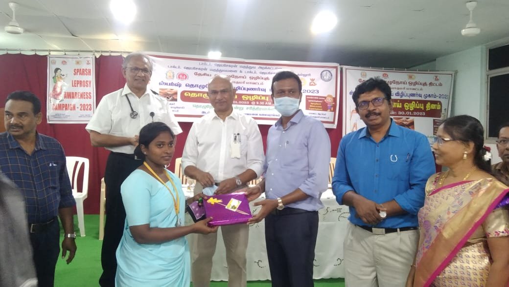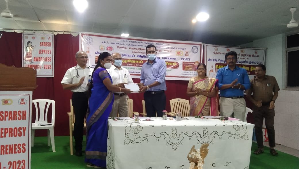 Dr Jeyasekharan College of Nursing. Chief guest address was given by Mr. Arvind, District collector, Kanyakumari district, followed by leprosy day oath was taken by the gatherings, it was guided by Dr Girija, Deputy director medical services (Leprosy) & Joint director (in charge) family welfare. Dr Pragaladhan. Deputy director of medical services (Tuberculosis) given a note regarding leprosy, followed by Dr. Praveen, Dermatologist, Dr Jeyasekharan medical trust presented about management of leprosy.
