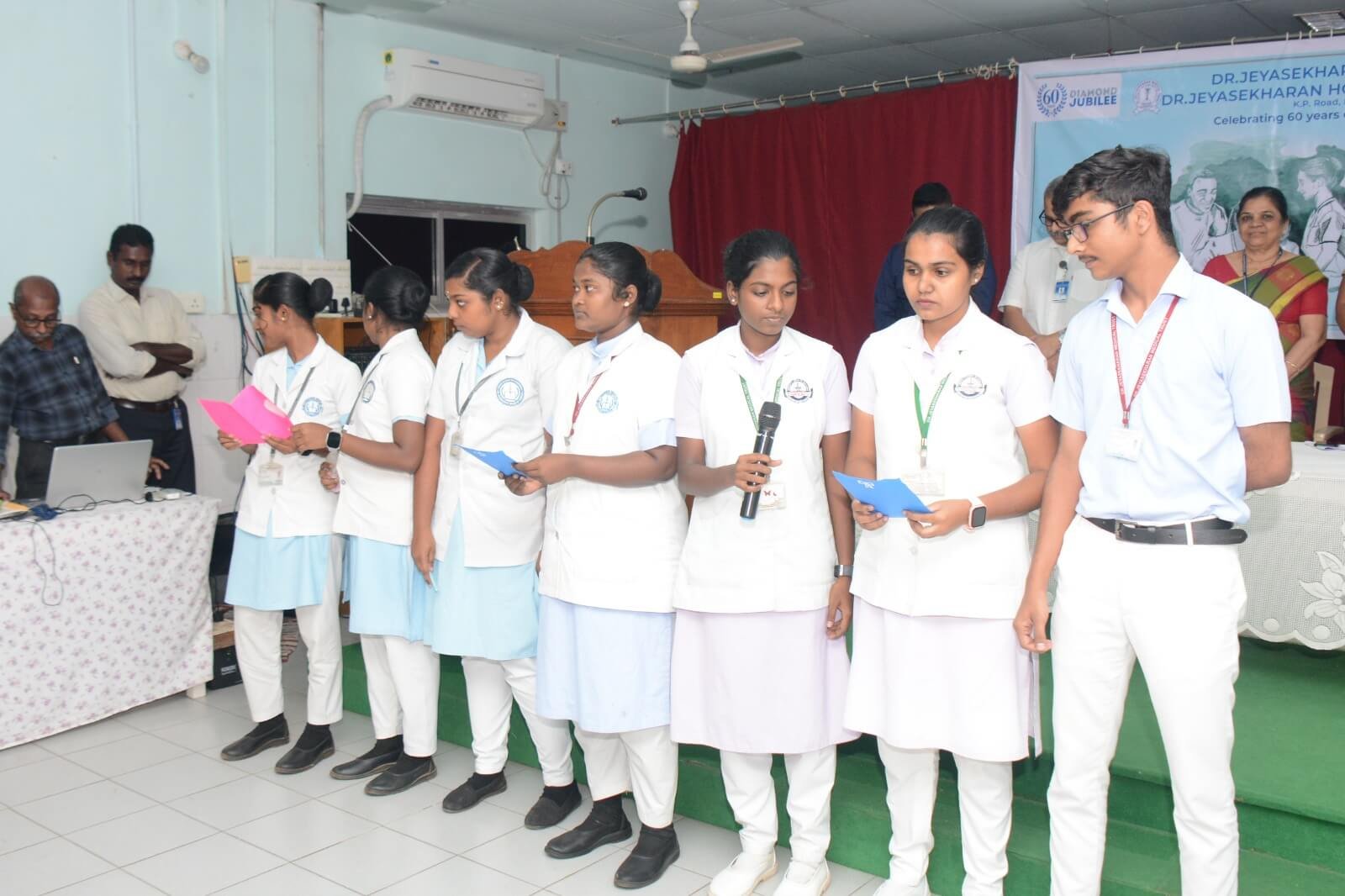 An Experience Sharing Session followed, where Mrs. Sheela (Paediatric Ward Administrator) shared their practical experiences in promoting safety measures within their respective wards. The program concluded with a heartfelt Vote of Thanks proposed by Mrs. Jeyalakshmi, Vice Principal, who expressed gratitude to all dignitaries, faculty members, and students for their active participation. The event ended with the National Anthem rendered by the JMT College Choir.
